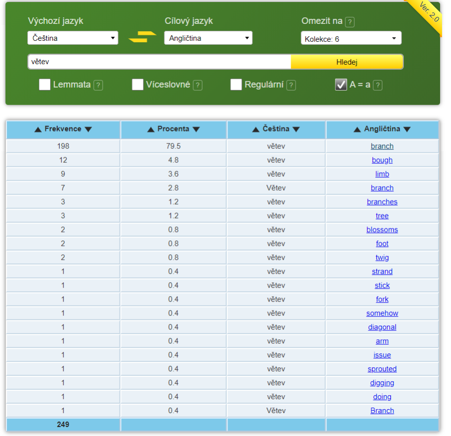 Někdo možná namítne, že podobné jazykové hrátky jsou sice zajímavé, ale ne příliš užitečné. Jak jsme ale zmínili, korpusy mohou sloužit i pro praktičtější účely. Kupříkladu aplikace Treq nám může usnadnit práci při překladu textů, umožňuje totiž nahlédnout do rozsáhlé překladové databáze. Když si tedy nevíme rady při překládání, můžeme se inspirovat staršími překlady a porovnat, jak se s hledaným výrazem v různých kontextech poprali překladatelé před námi.